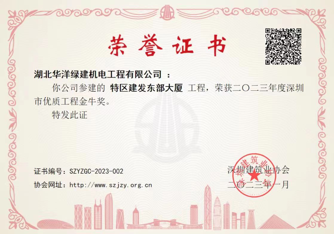 深圳特區(qū)建發(fā)東部大廈項(xiàng)目榮獲“深圳市優(yōu)質(zhì)工程金牛獎(jiǎng)”